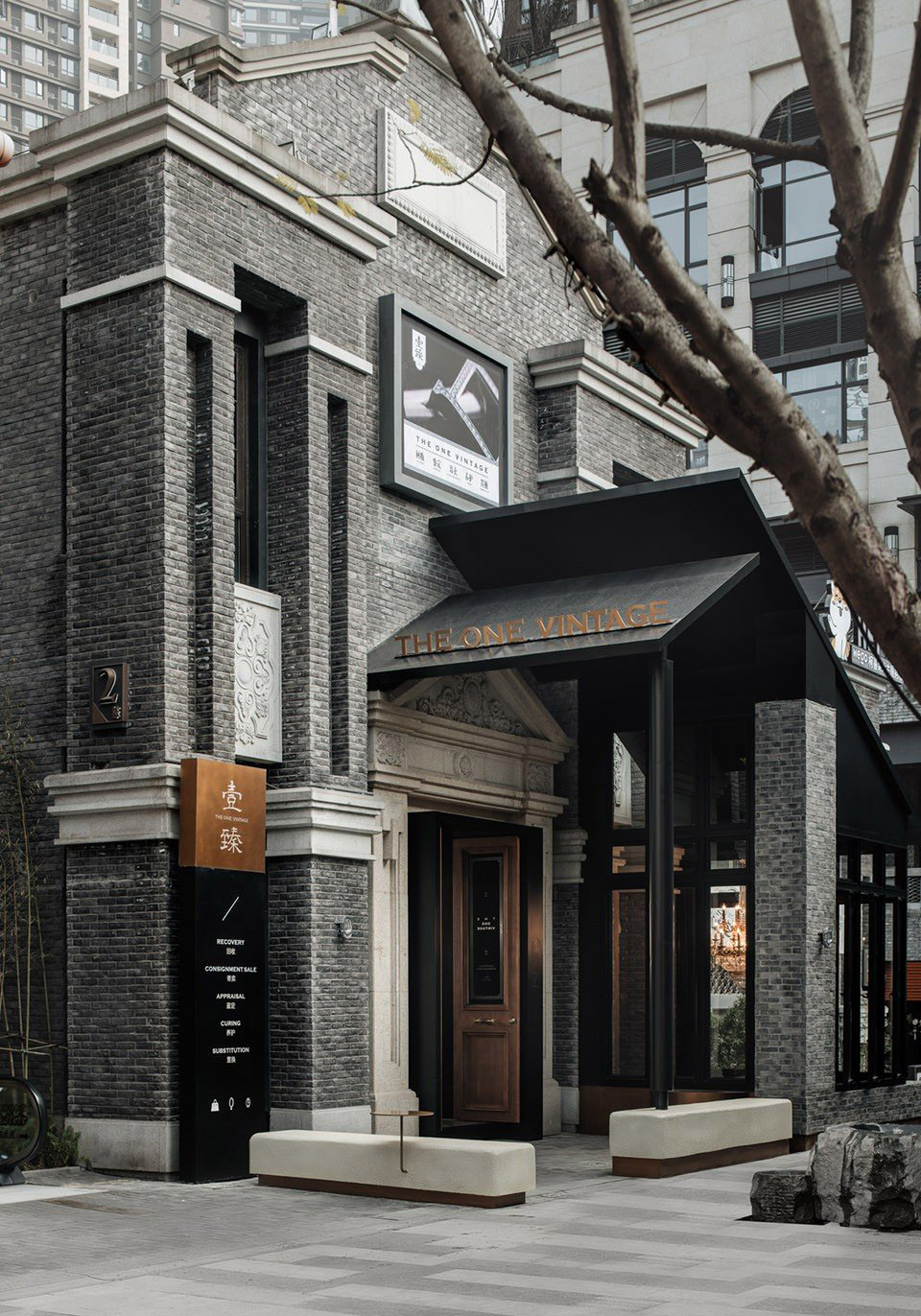 作为初创品牌的「壹臻」,其首家门店位于重庆市南岸区弹子石老街,是一栋仿民国式的独立建筑。其物业本身,具有较强的年代感,这无疑是为该中古门店的视觉呈现,创造了一定的基础条件。但也正是因为其突出的民国建筑形象,又为我们力求创新的空间设计,造成了不小的物理环境障碍。再加上山城特有的地理因素,该物业背靠山体,面朝高墙,且商业环境的主交通流线并未与该物业产生直接的关联,甚至在主通道上,我们只能侧视其建筑的一角……这都成为了在设计之初我们所面临的挑战。于是,如何让过往的游客能关注到「壹臻」,并吸引他们进入商店,将是我们首先要解决的问题。